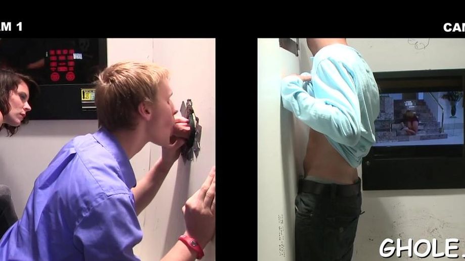 Descripción: gay dudes enjoy some oral through a hole in the wall