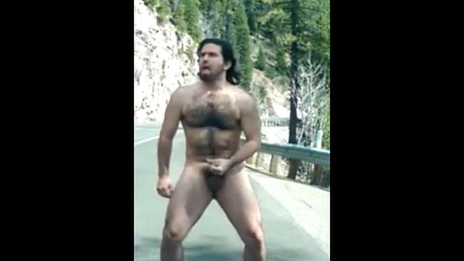 Description: Hairy man bator jerking off by hairy gay the road