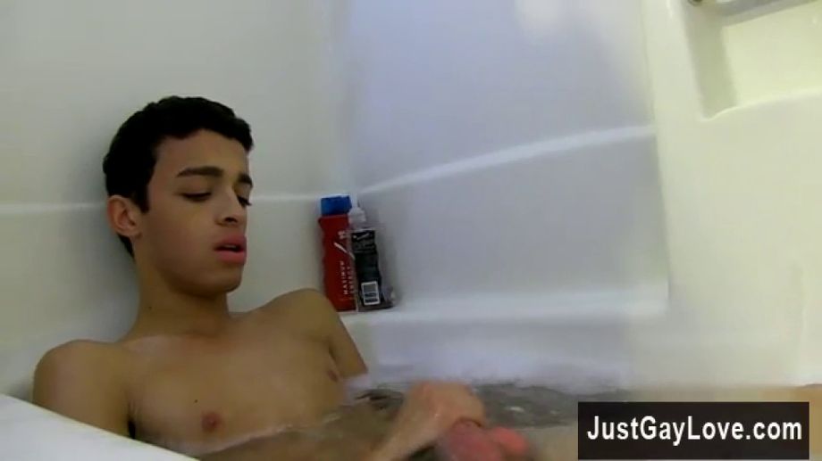 Description: He soaps up amongst the bubbles kneading his slick body and pink rock hard cock