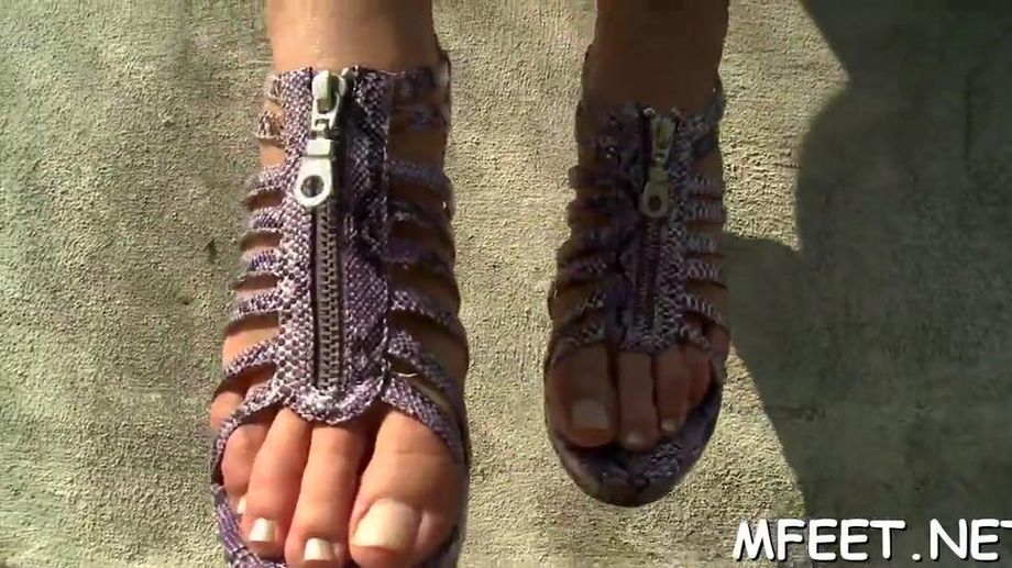 תיאור: Sexy blonde offers a stunning footjob as a solution to dudes lust