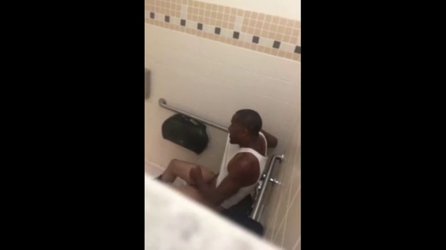 gym spy black cock jerk off and cum